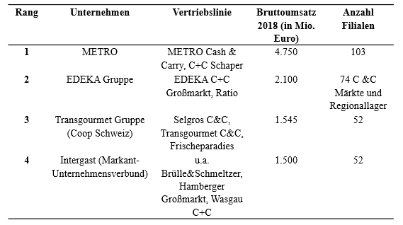 Die Struktur des Großhandels hat sich in den letzten Jahren stark verändert. So wie im Lebensmitteleinzelhandel eine Konzentration auf die Unternehmen EDEKA, Rewe, Lidl und Aldi stattgefunden hat, gibt es auch im Großhandelsbereich eine zunehmende Verdichtung. Dies gilt besonders für den Cash & Carry Bereich (sogenannte „Selbstbedienungsmärkte“), aber auch für den Zustellgroßhandel (auch „Foodservice“ genannt). Die Grenze zwischen diesen beiden Bereichen verschwimmt dabei immer mehr. So bieten die meisten Unternehmen mittlerweile beide Optionen an.