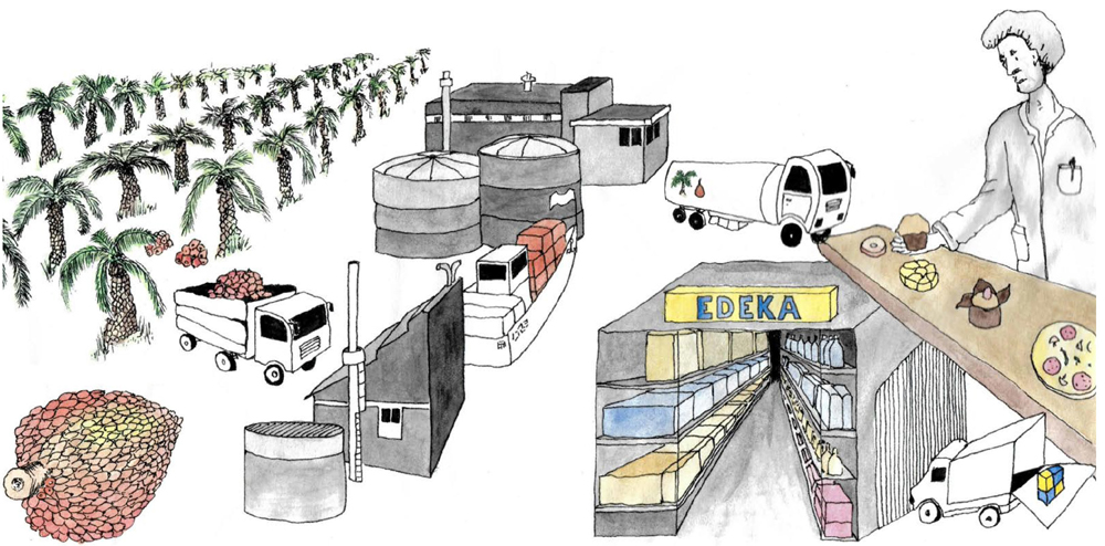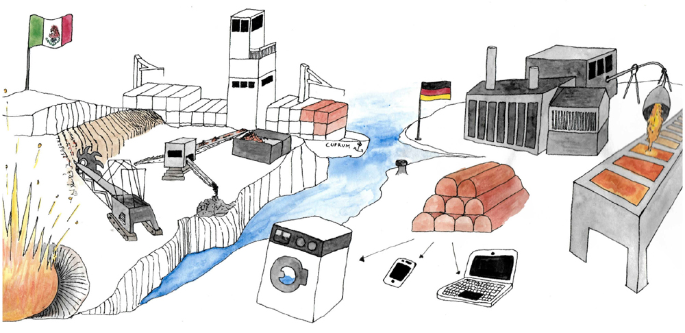 Zumindest rein materiell scheinen Palmöl und Kupfer- bzw. Molybdänerz nicht viel gemeinsam zu haben. Doch für unser Produktions- und Konsummodell haben beide die Bedeutung von Massenrohstoffen. Länder wie Mexiko und Guatemala produzieren sie massenhaft und richten ihre Wirtschaft auf den Export aus. Die Rohstoffe werden von deutschen Unternehmen importiert, die sie für die Verarbeitung in Alltagsprodukten wie Donuts und Smartphones aufbereiten. Die Studie „Der deutsche Rohstoffhunger“ zeigt auf, dass die Produktion der Rohstoffe ähnliche menschenrechtliche Folgen hat.