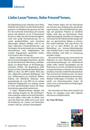 Außerdem: Jubiläumsgruß zu 40 Jahren CIR, Länderberichte aus El Salvador, Guatemala und Nicaragua und unsere Kampagne zur Fußball-EM 2021.